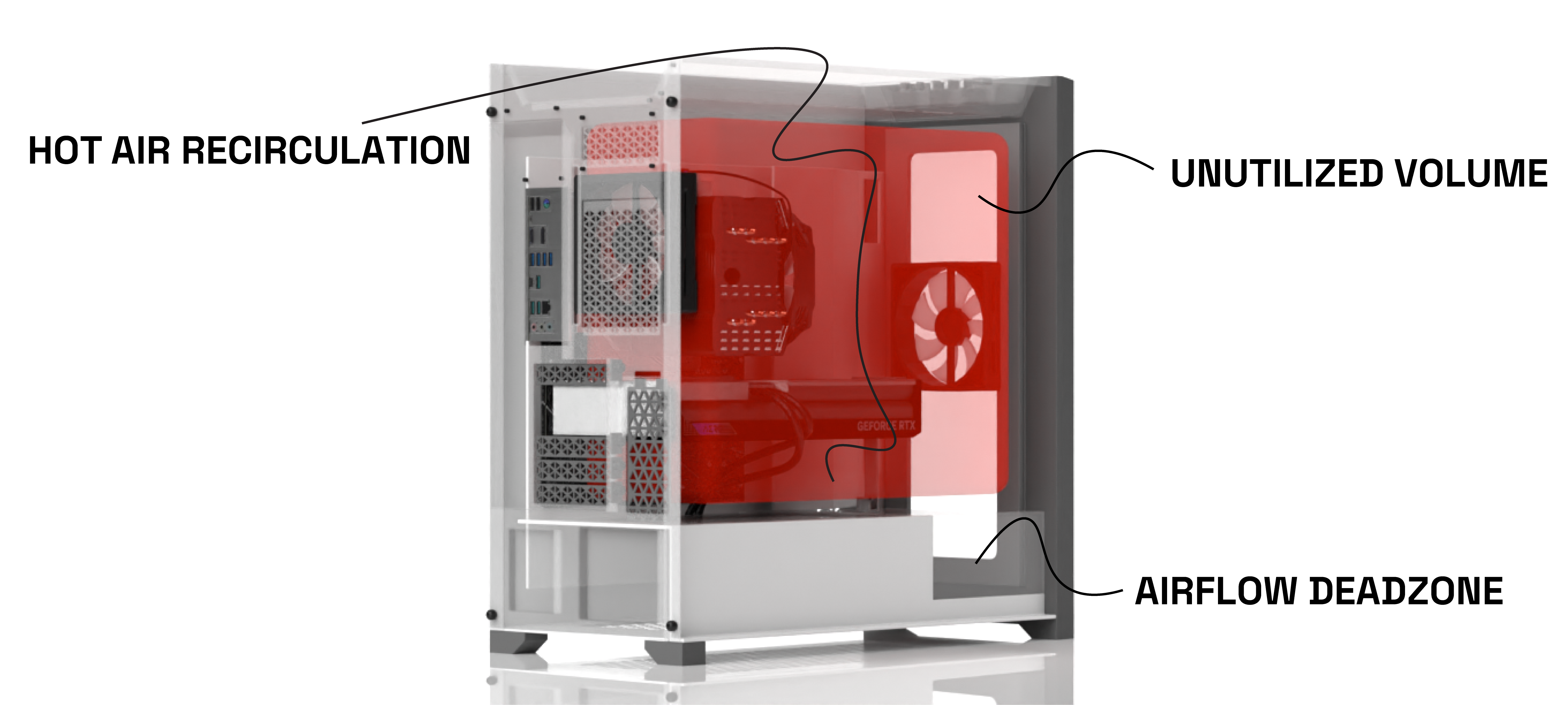 Traditional desktop towers have a major inefficiency when it comes to cooling: the recirculation of hot air. Heat from components such as the GPU, CPU, RAM, and your M.2 SSD dumps into one big, hot chamber.